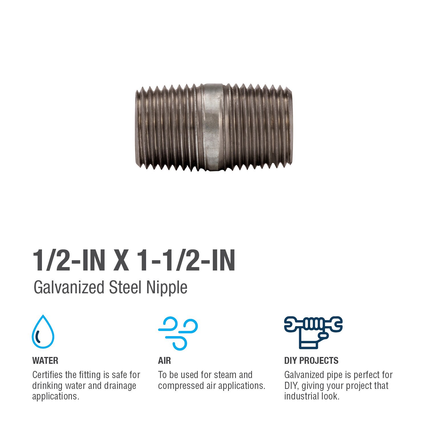 slide 1 of 6, RELIABILT 1/2-in x 1-1/2-in Galvanized Nipple, 1 ct