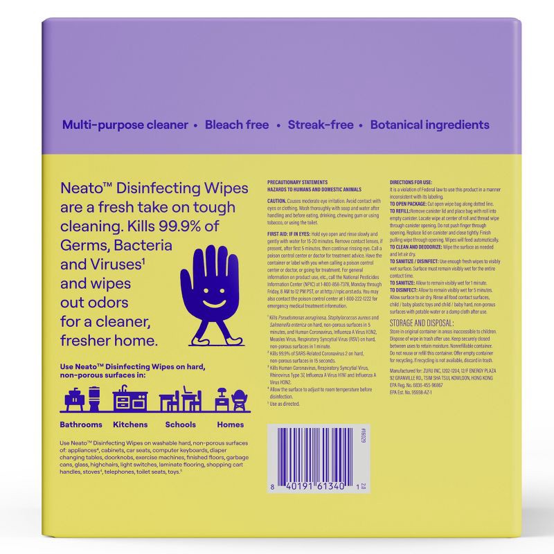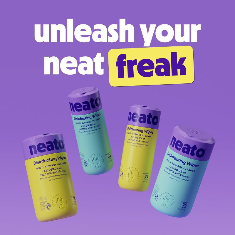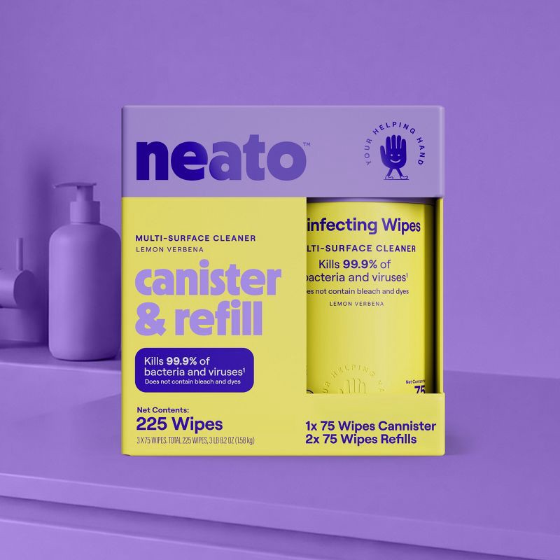 Neato™ Disinfecting Wipes allow you to unleash your inner neat freak. Killing 99.9% ofGerms, Bacteria and Viruses¹, Neato™ powers through tough messes, dirt and grease, The zesty Lemon Verbena scent h…