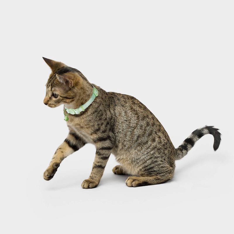 Give your feline friend a comfortable collar with this Buckle Cat Collar from Boots & Barkley™. This mint green collar comes with a bell and features an adjustable length with buckle to ensure the rig…