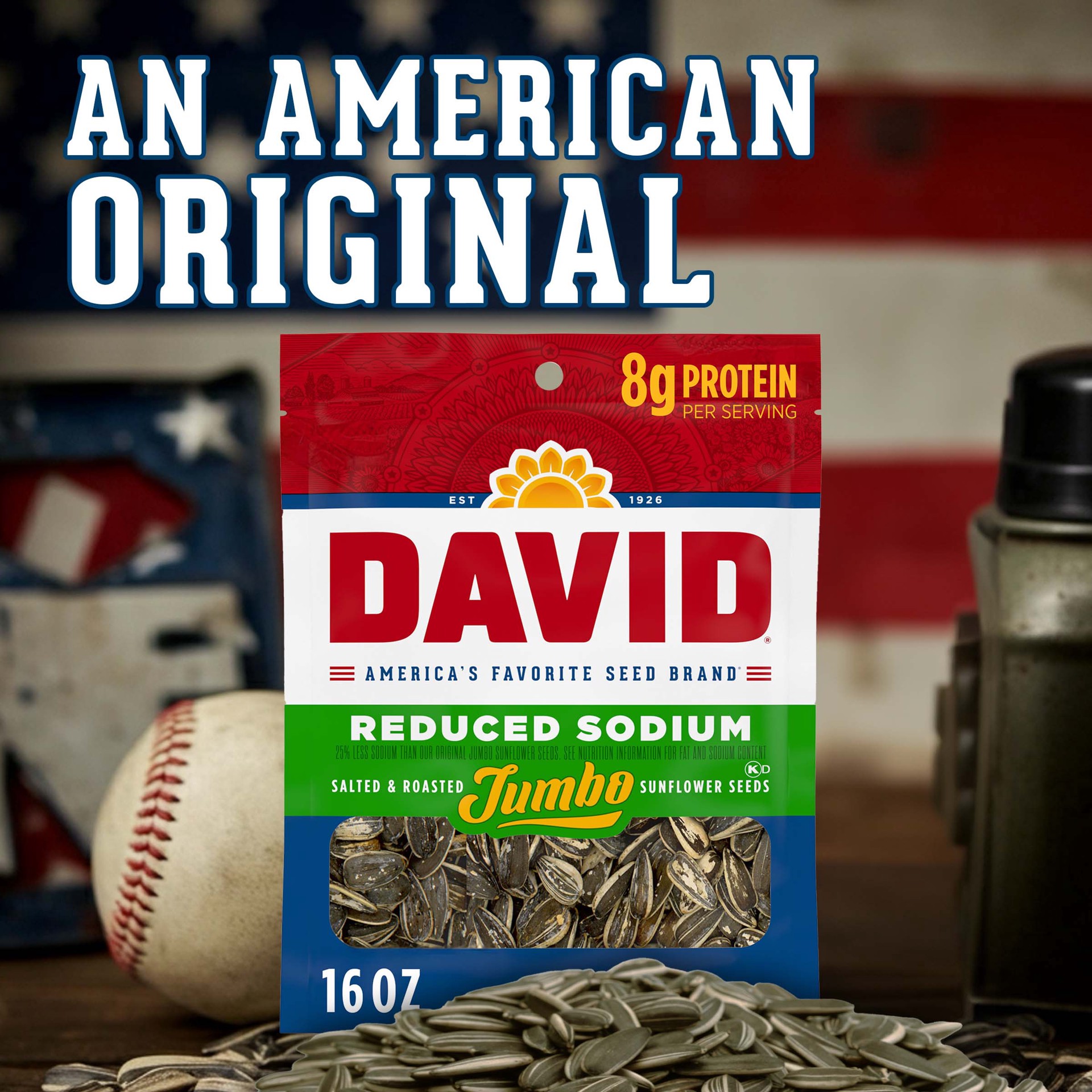 DAVID Roasted and Salted Reduced Sodium Sunflower Seeds, Original Flavor, 16oz.