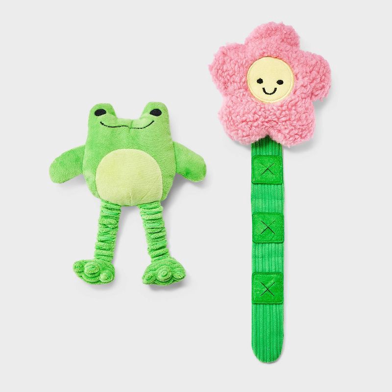Flower and Frog Animal and Plush Dog Toy - Boots & Barkley™ 2ct