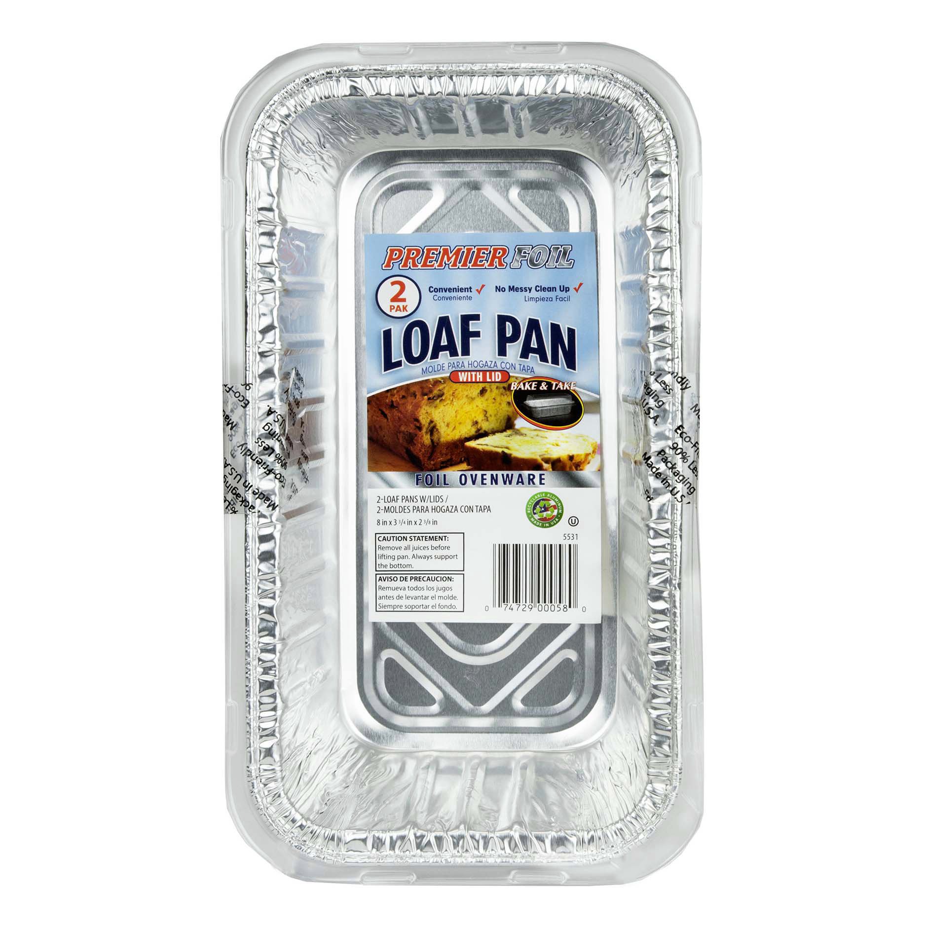Premier Foil Loaf Pan with Lid, 2 ct. - 8 in. X 3-3/4 in. X 2-3/8 in. - Convenient - No Messy Clean Up - Bake & Take