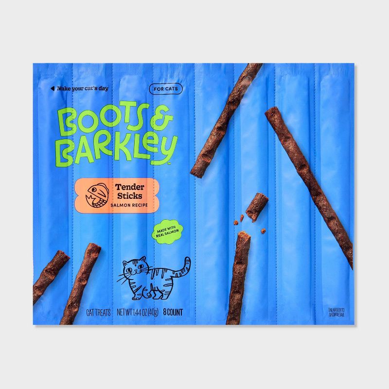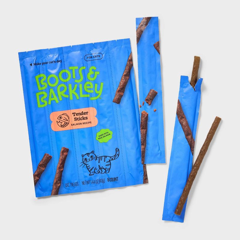 Treat your cat to tender, savory goodness with these Tender Sticks Salmon Recipe from Boots & Barkley™. This eight-count treat pack features tender sticks made with real salmon for tempting flavor. Wi…
