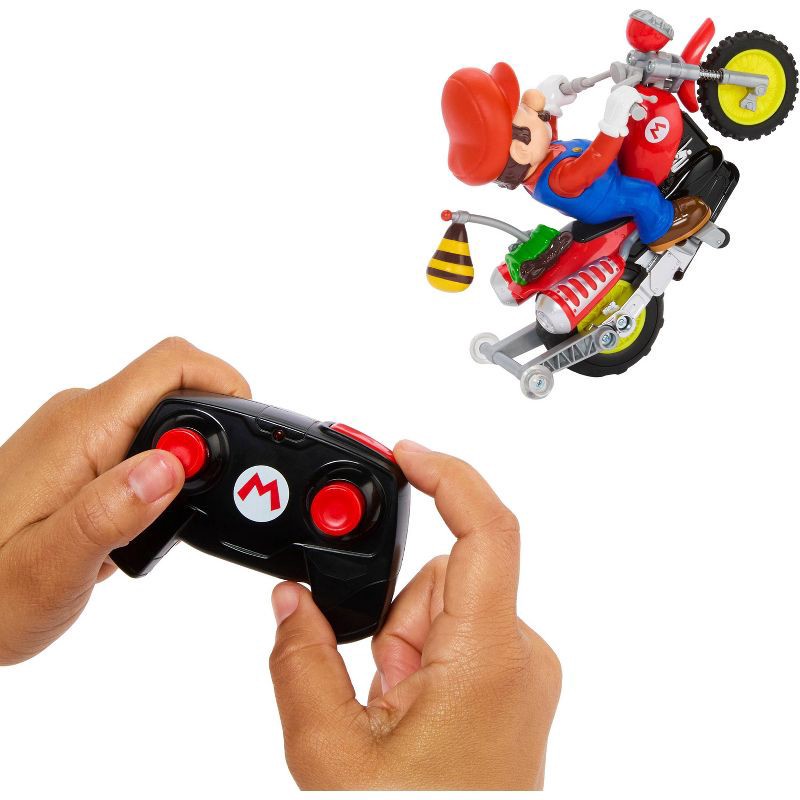 - Push the button on the remote and Mario pops up on the wheelie bar, showing off his stunting skills