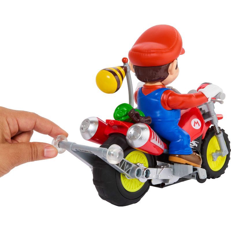 - Push the button on the remote and Mario pops up on the wheelie bar, showing off his stunting skills