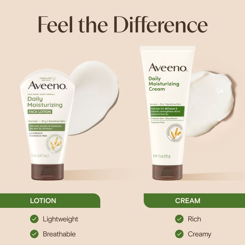 - Aveeno Daily Moisturizing Face Lotion to intensely nourish normal to dry, sensitive skin