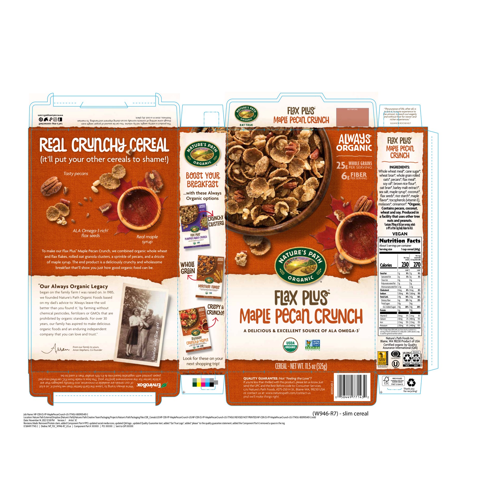 Nature''s Path Flax Plus Maple Pecan Crunch are nutrient-dense whole wheat and flax flakes, combined with toasted granola clusters, protein-packed pecans and drizzled with real, organic maple syrup. O…