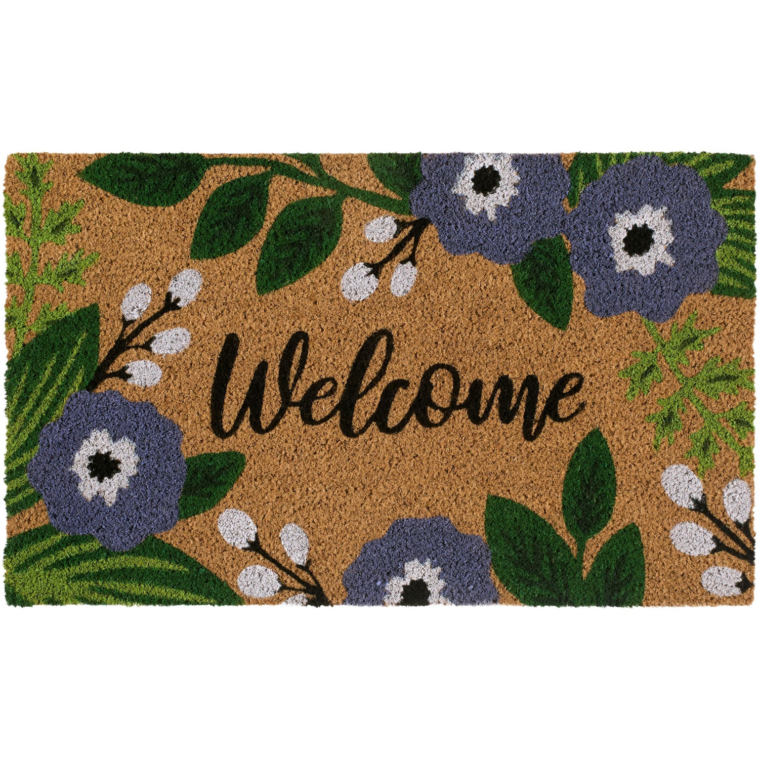 slide 1 of 2, Purple Floral Printed Coir Mat, 1 ct
