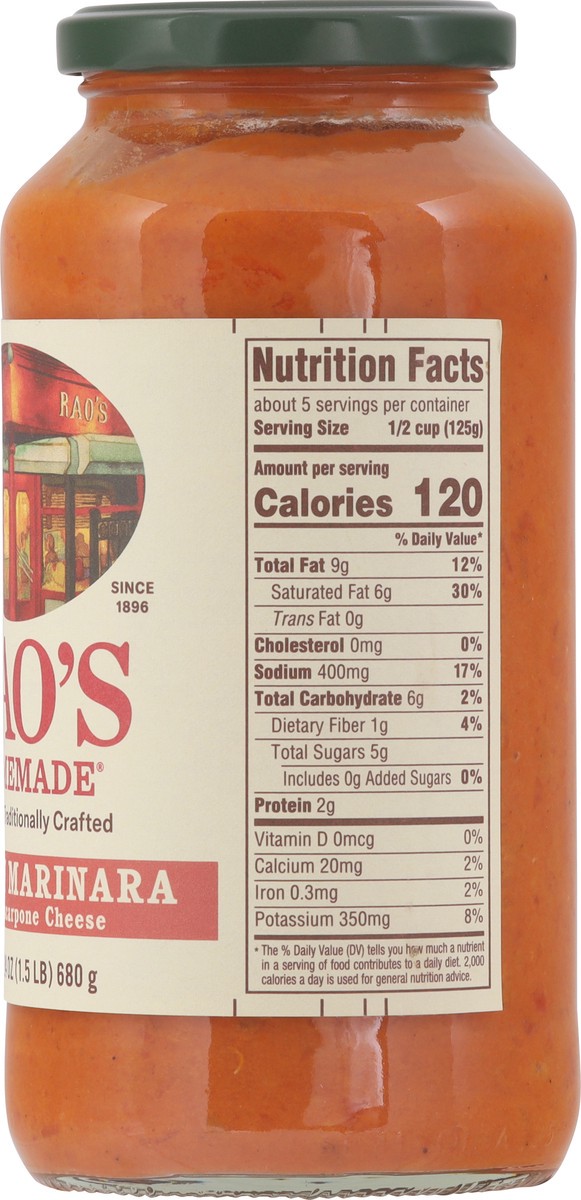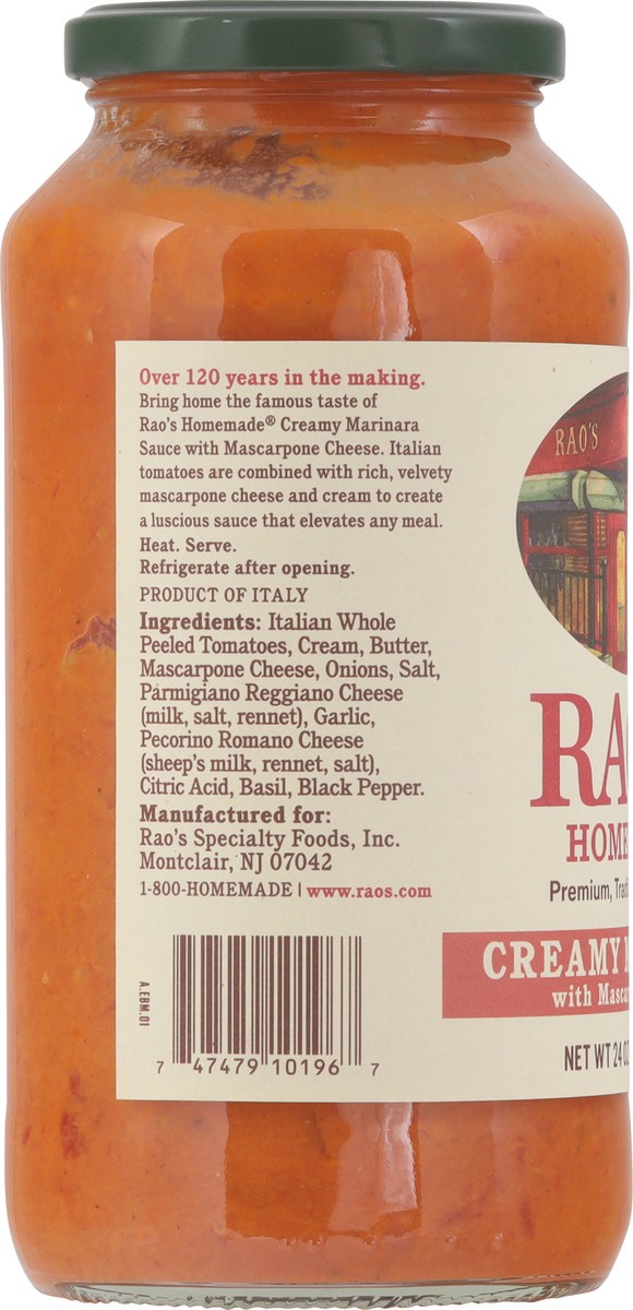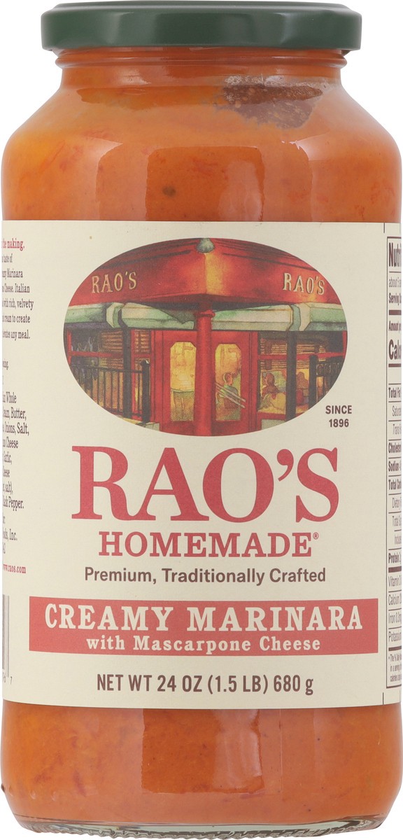 Bring home the famous taste of Rao's Homemade® Creamy Marinara Sauce. This premium pasta sauce with authentic Italian flavor is made with Italian tomatoes, mascarpone and Parmigiano Reggiano cheeses. …