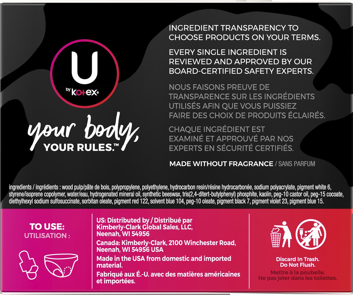 Wood Pulp/Pate De Bois, Polypropylene, Polyethylene, Hydrocarbon Resin/Resine Hydrocarbonee, Sodium Polyacrylate, Pigment White 6, Styrene/Isoprene Copolymer, Water/Eau, Hydrogenated Mineral Oil, Synt…