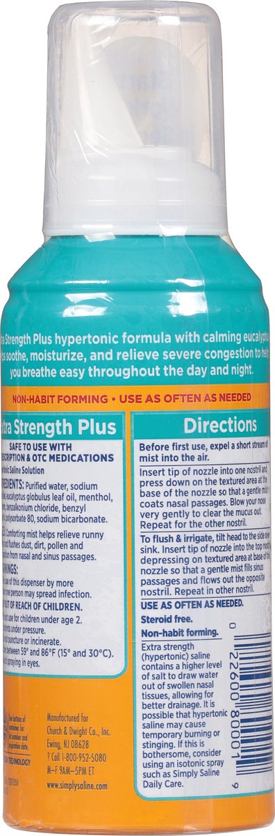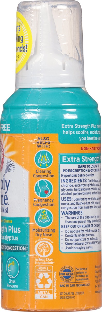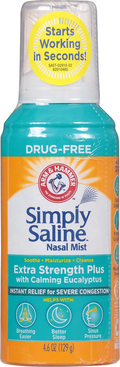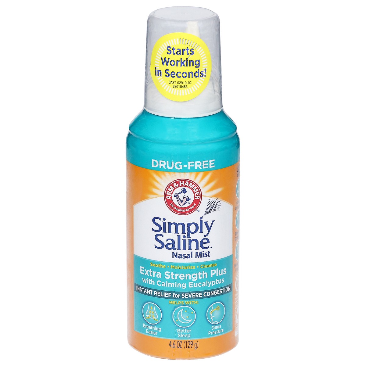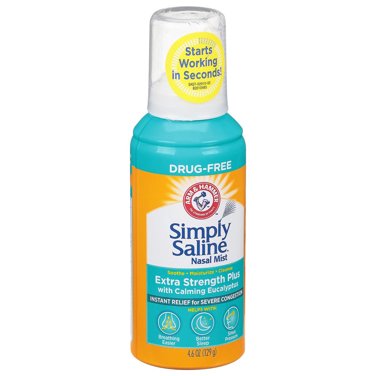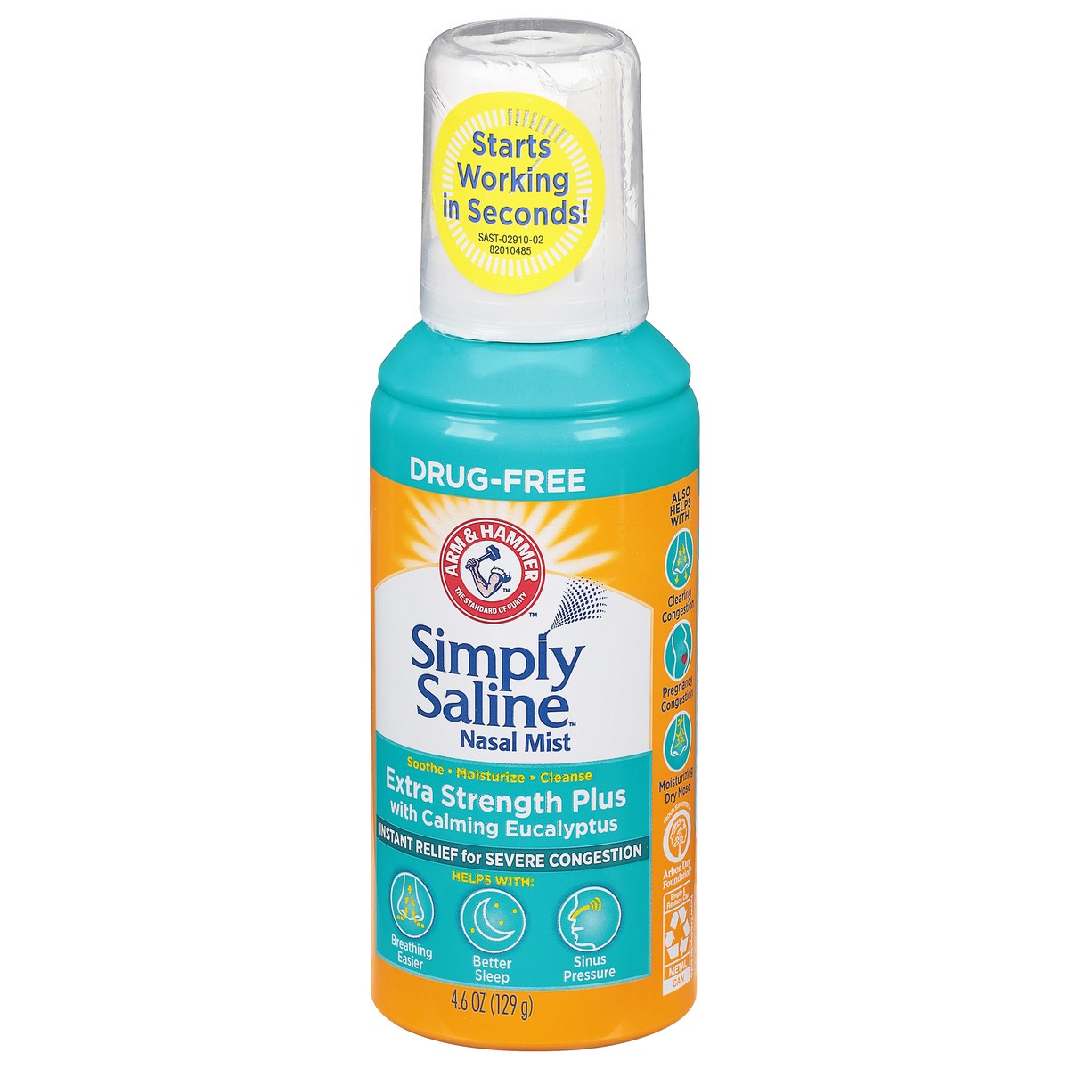 Get instant relief for severe nasal congestion with drug-free ARM & HAMMER Simply Saline Extra Strength Plus Nasal Mist with Calming Eucalyptus. It starts working in seconds to help soothe and moistur…