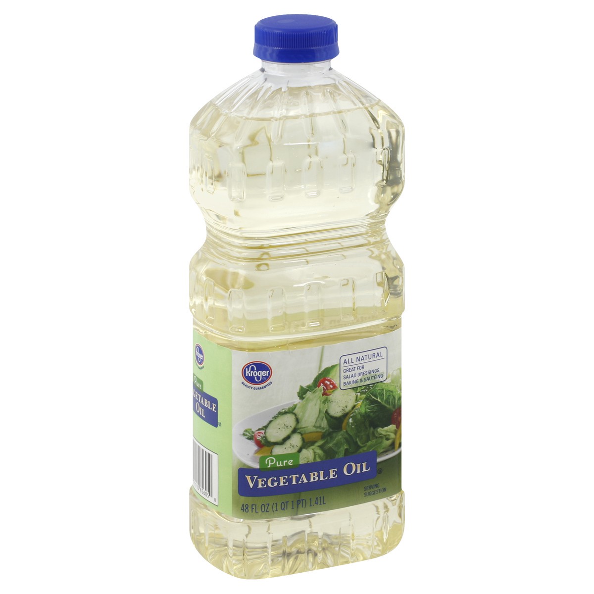 Kroger Vegetable Oil.Can be used in a wide range of frying, baking and cooking applicationsCholesterol FreeZero Grams of Trans Fat