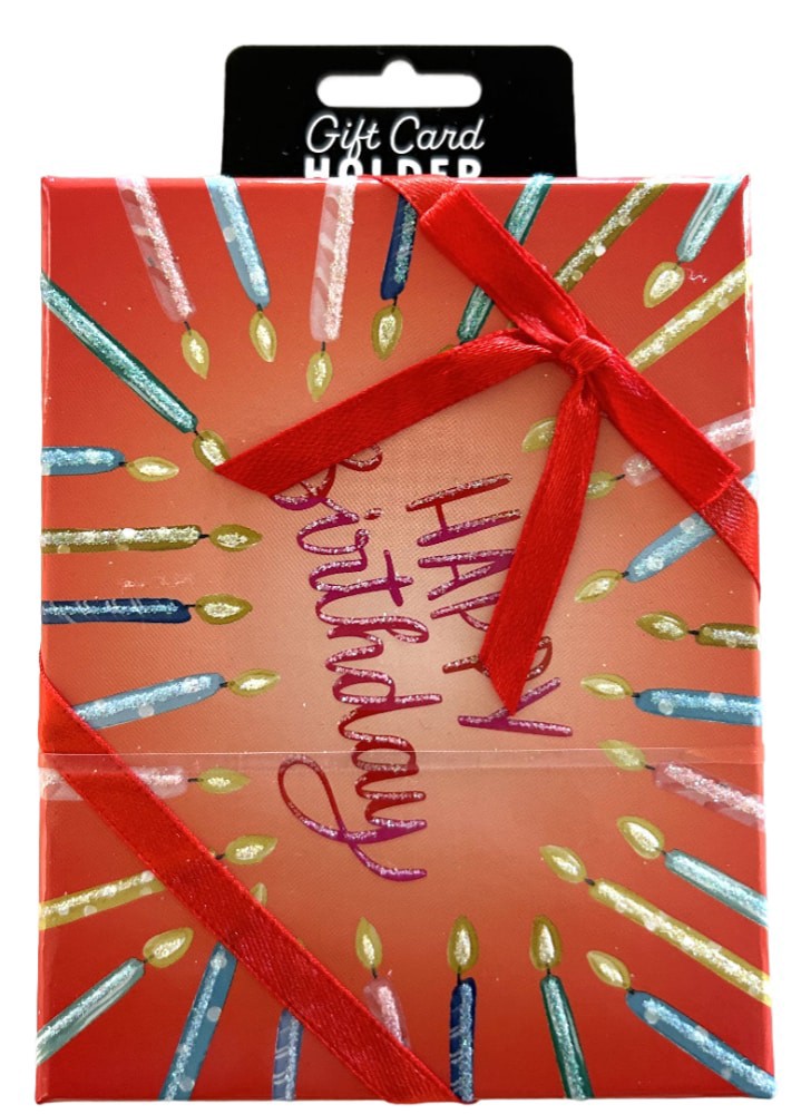 Happy Birthday Candles With Red Ribbon Gift Card Holder Box