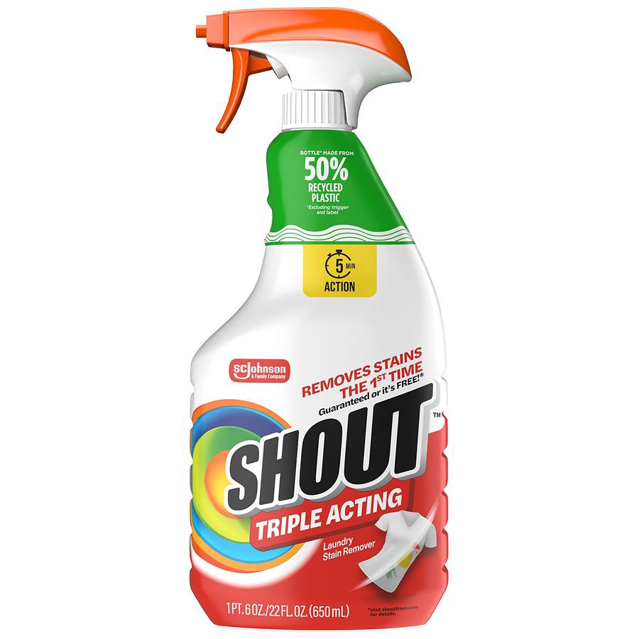 Shout Triple-Acting Laundry Stain Remover is tough on stains, but gentle on your color-fast machine-washable fabrics. It''s triple-acting formula Clings onto fabric stains in the washing cycle, Penetr…