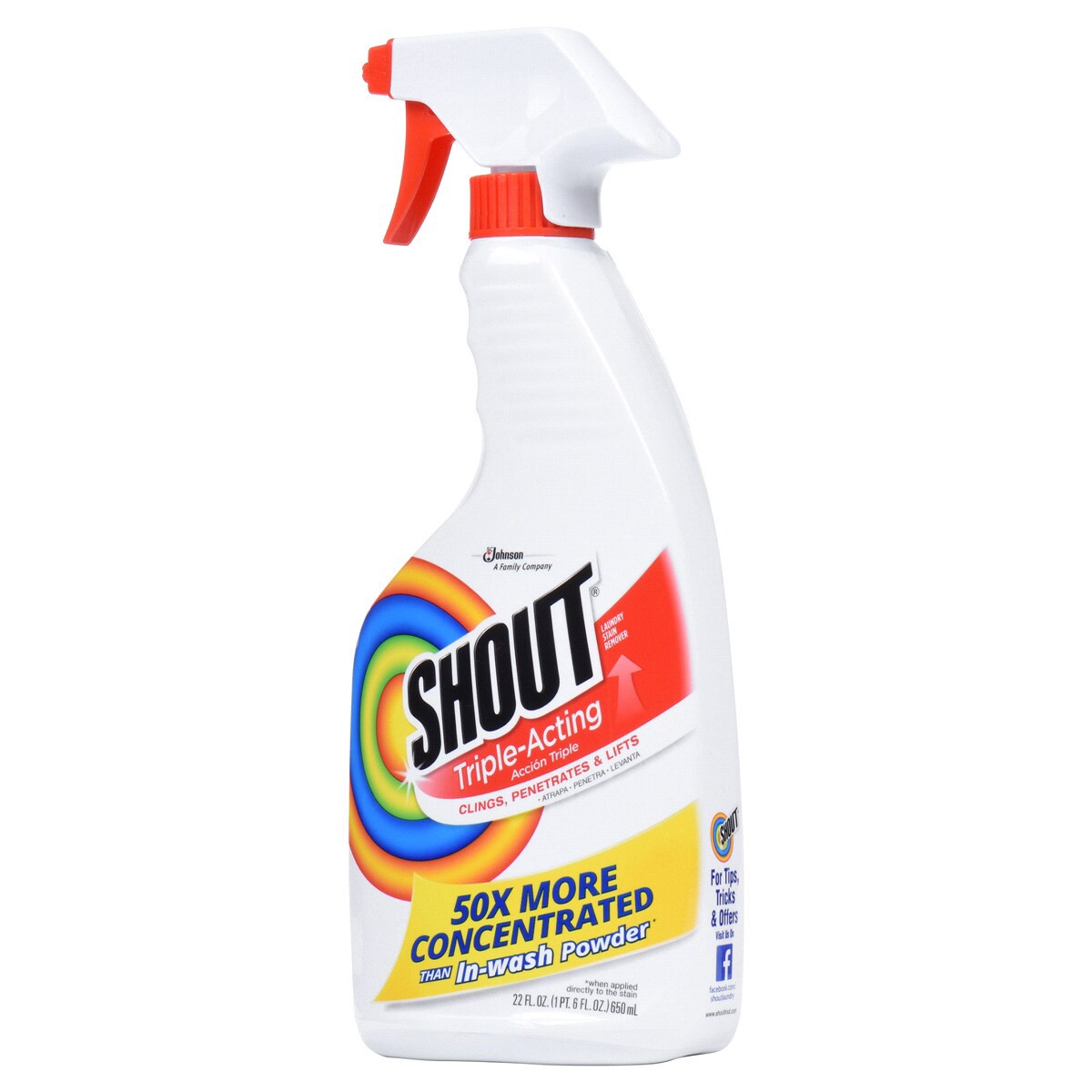 Shout Triple-Acting Laundry Stain Remover is tough on stains, but gentle on your color-fast machine-washable fabrics. It''s triple-acting formula Clings onto fabric stains in the washing cycle, Penetr…