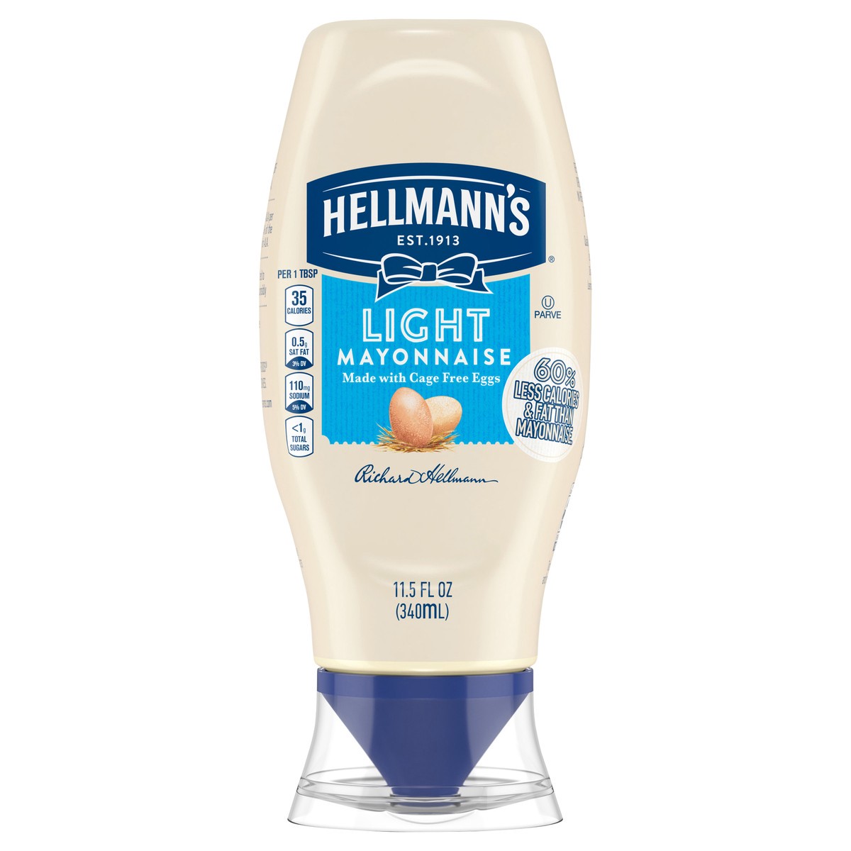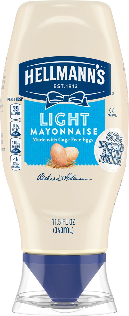 Enjoy the delicious, light and creamy taste of America’s #1 Light mayonnaise! With 100% cage-free eggs, 35 calories per tablespoon and 3.5g of fat per serving, Hellmann’s mayo light has less than half…