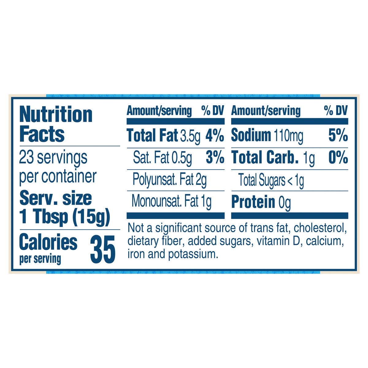 - Mayonnaise Condiment with a good Source of Omega 3-ALA (contains 230mg ALA per serving