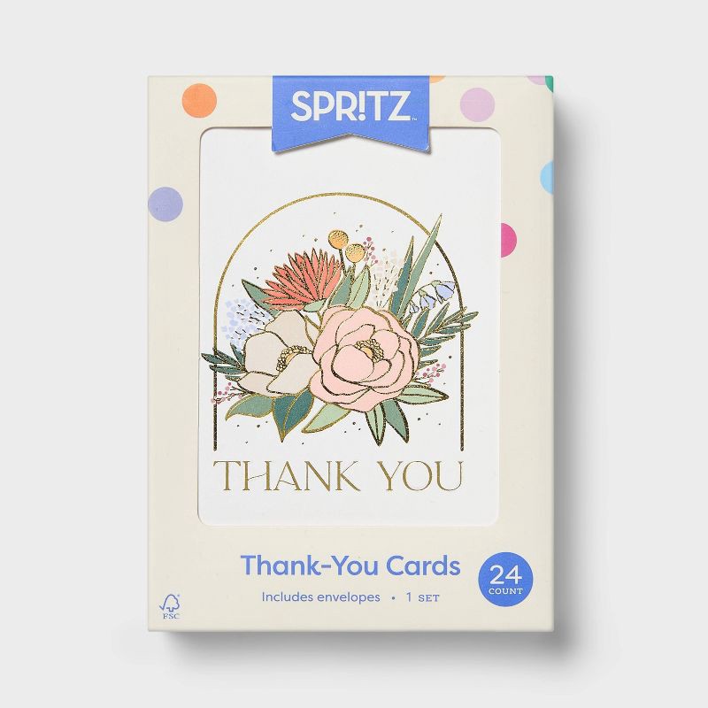 24ct Wedding Floral Cards - Spritz™: Thank You Notes with Envelopes, Botanical Design, Foil Accents, Single-Design Pack