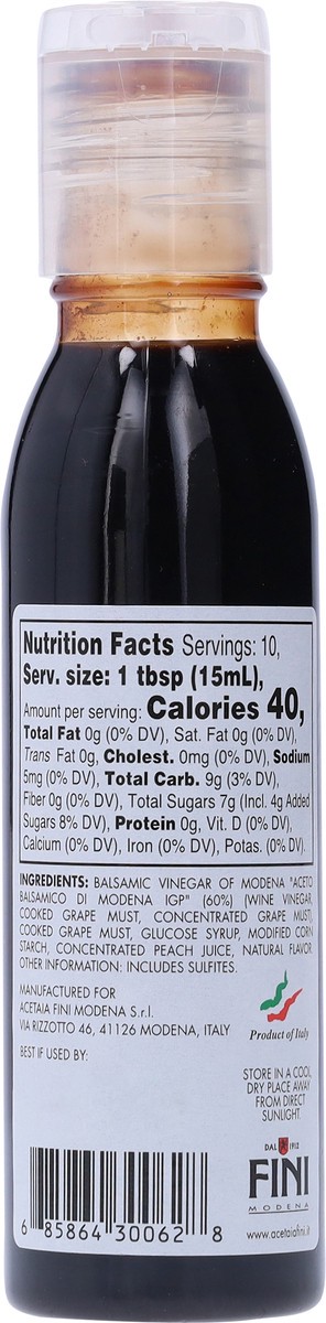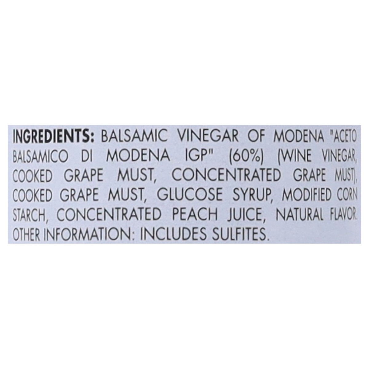 Balsamic Vinegar of Modena Aceto Balsamico Di Modena Igp (60%) (Wine Vinegar, Cooked Grape Must, Concentrated Grape Must), Cooked Grape Must, Glucose Syrup, Modified Corn Starch, Concentrated Peach Ju…