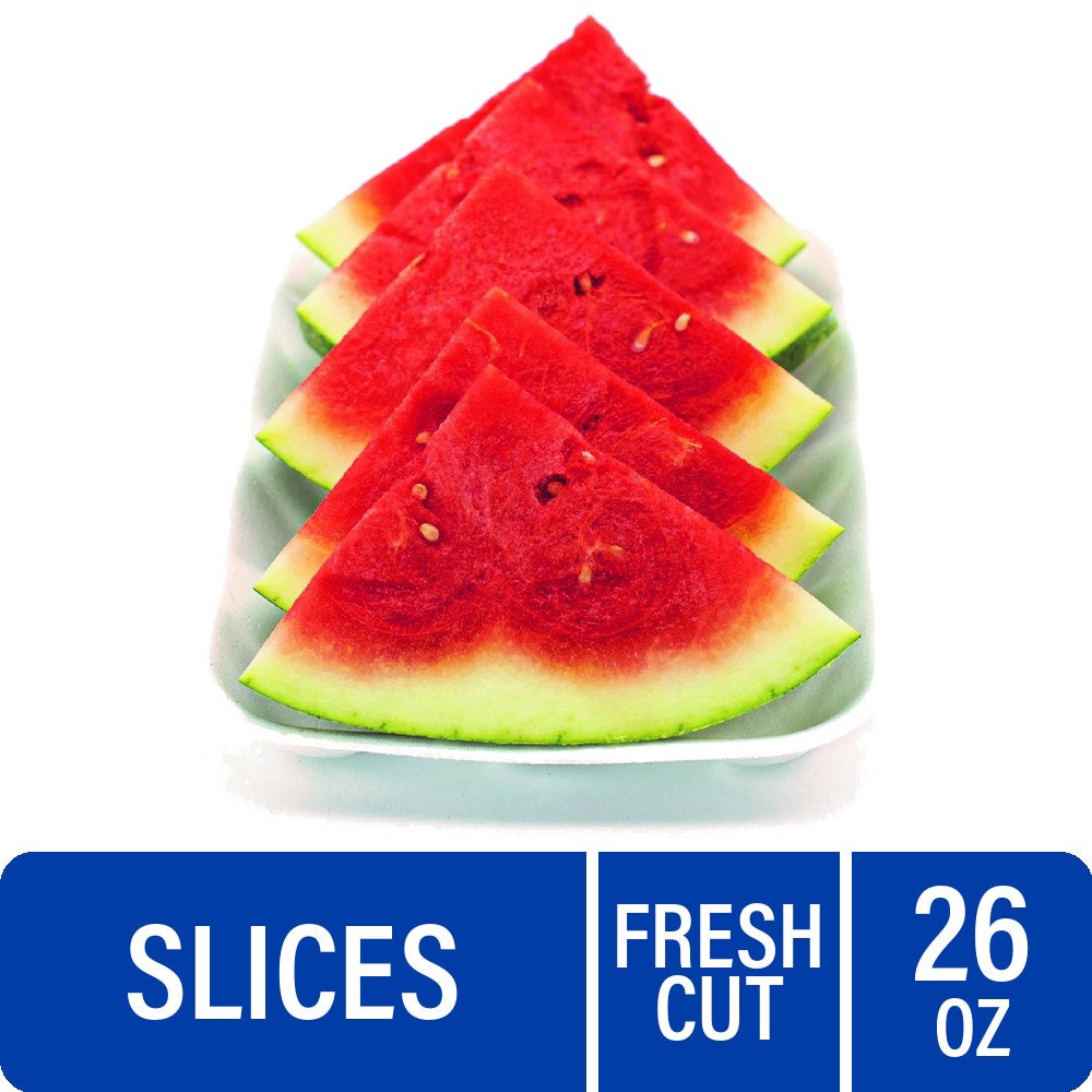 Watermelon 4 Slices, Grab-and-go hydration. These fresh Watermelon Slices are ripe, juicy, and ready to eat. A convenient, healthy snack perfect for picnics or a quick cool down.