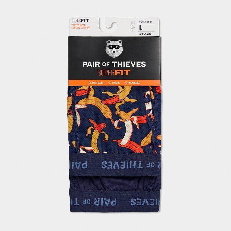 Pair of Thieves Men's Super Fit Print 2pk Boxer Briefs - Navy Blue S