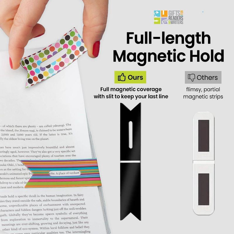- Magnetic Bookmark: This set of 2 bookmarks is equipped with a magnetic feature, keeping your book mark in place. Never lose track of your reading again with these magnetic bookmarks.