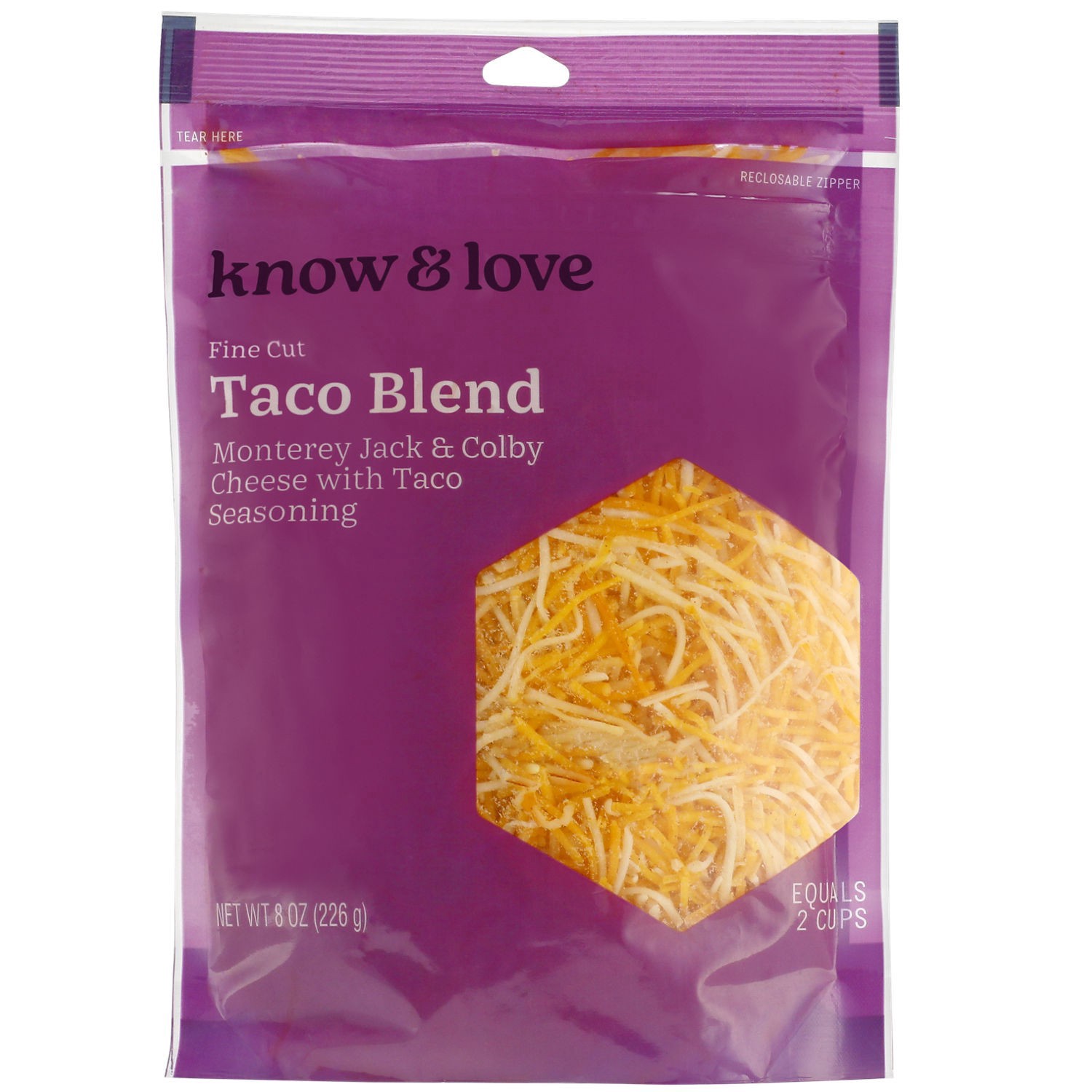 slide 1 of 1, know & love Fancy Taco Blend Shredded Cheese 8 Ounces, 8 oz