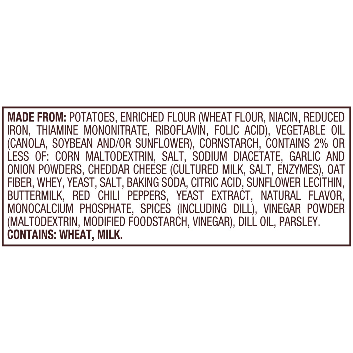 MADE FROM: POTATOES, ENRICHED FLOUR (WHEAT FLOUR, NIACIN, REDUCED IRON, THIAMINE MONONITRATE, RIBOFLAVIN, FOLIC ACID), VEGETABLE OIL (CANOLA, SOYBEAN AND/OR SUNFLOWER), CORNSTARCH, CONTAINS 2% OR LESS…