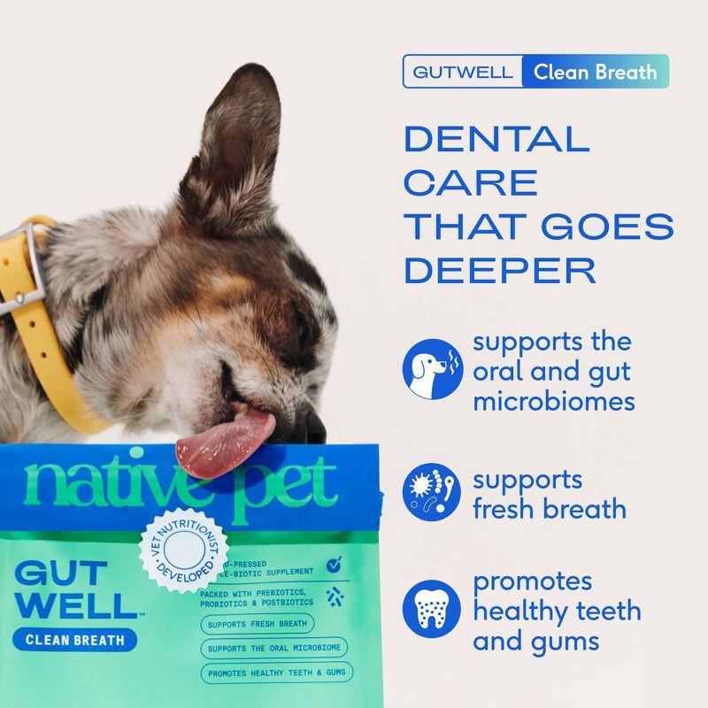 Does your pup's “morning breath” last all day? Say goodbye to stinky kisses with Native Pet GutWell Clean Breath Dental Health & Plaque Control Supplement for Dogs. This science-backed, vet-developed …