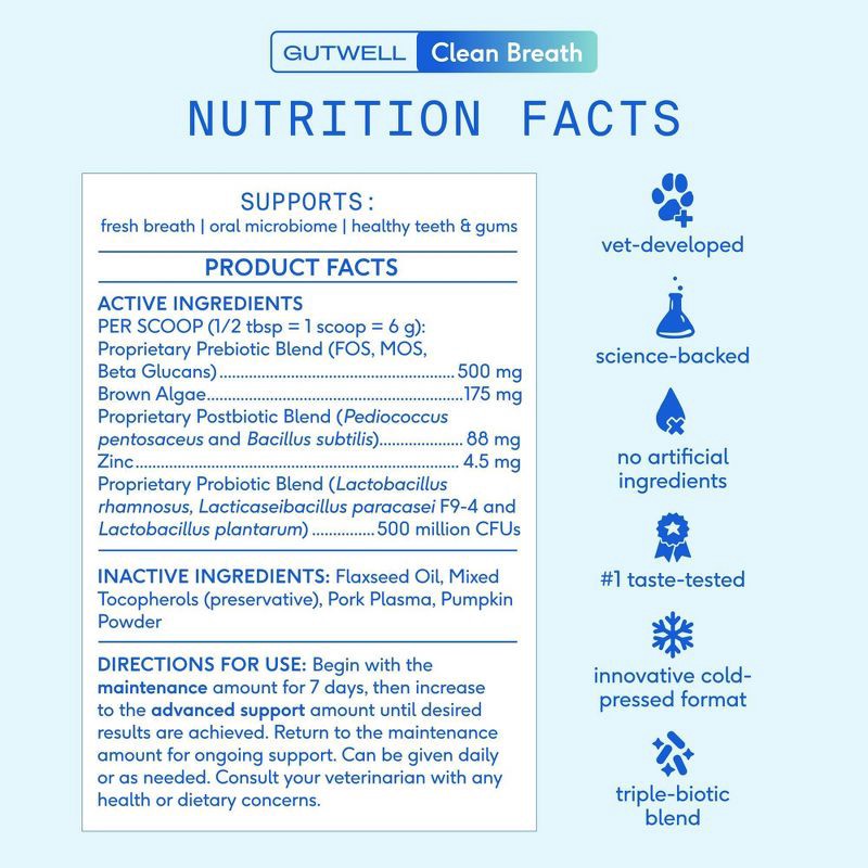 Native Pet GutWell Clean Breath Pork Flavor Plaque Control & Dental Care Supplement with Probiotics for Dogs - 12.7oz