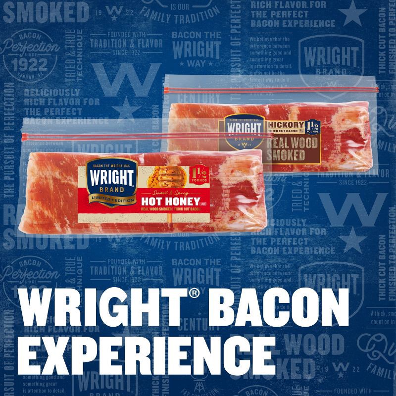 - One 1.5 lb pack of Wright Brand Limited Edition Hot Honey Flavored Real Wood Smoked Thick Cut Bacon