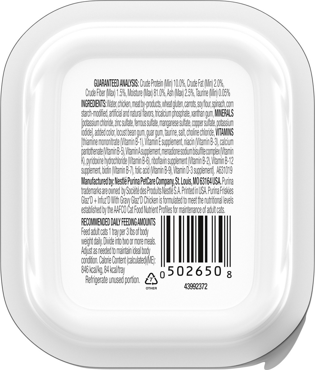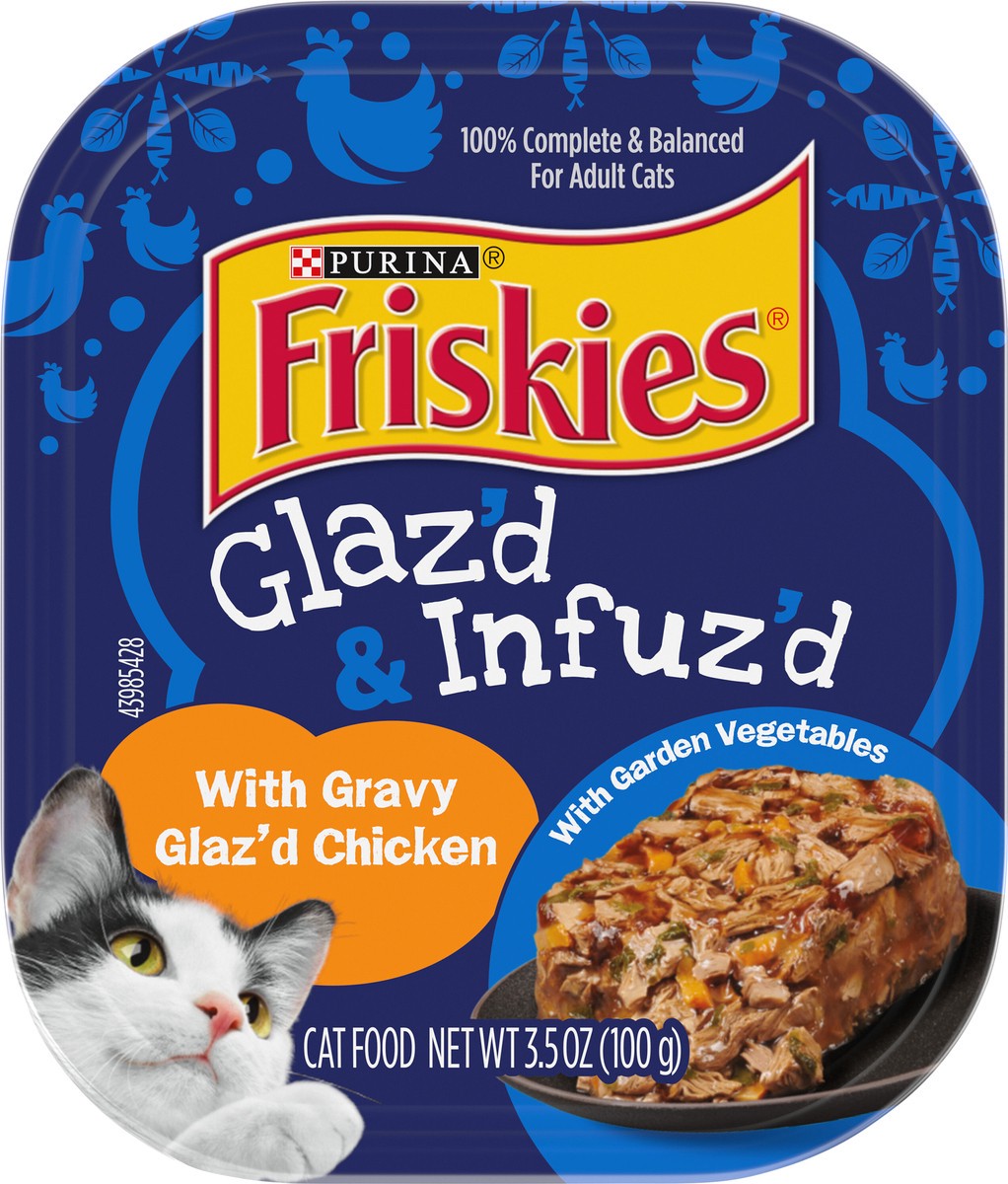Give your cat a reason to purr when you fill her dish with Purina Friskies Glaz'd and Infuz'd With Gravy Glaz'd Chicken wet cat food. Each premium cat food tray is easy to open and easy to serve, so y…