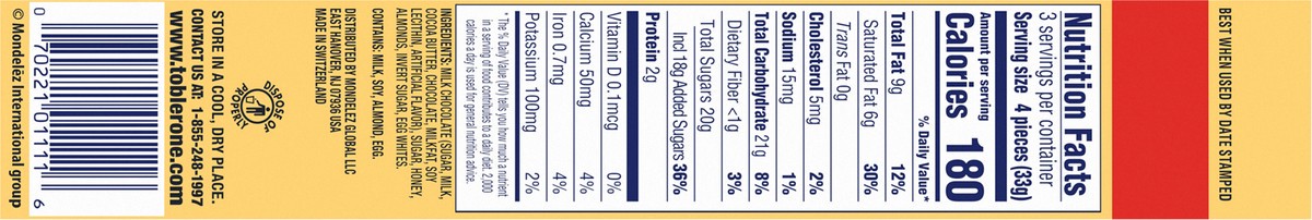 Toblerone Milk Chocolate Bar With Honey And Almond Nougat - 3.5 Oz