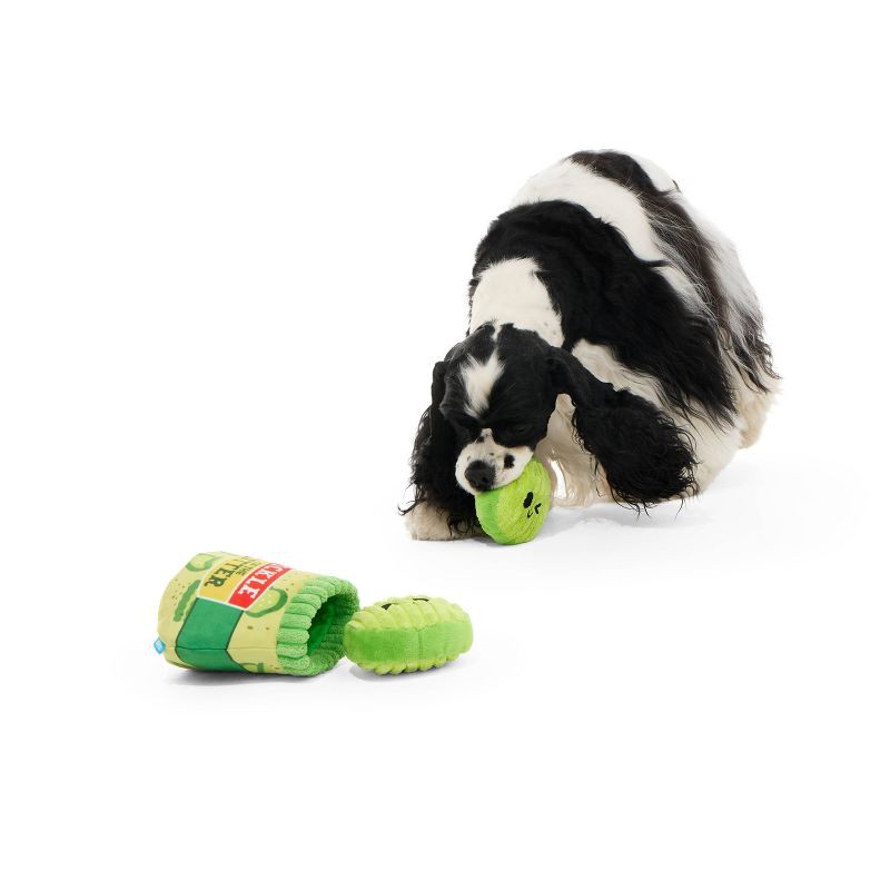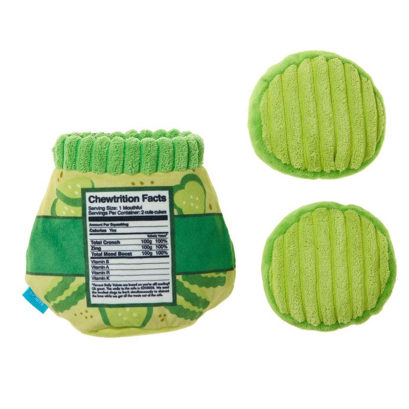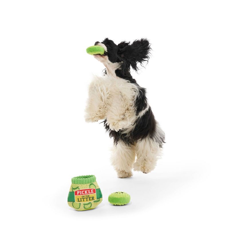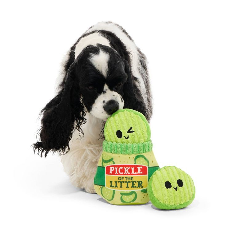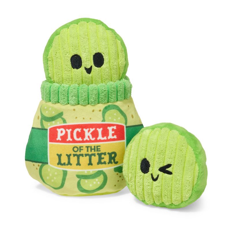 Pickle of the Litter turns a classic side into the main course! With three toys in one, this plush pickle jar dog toy has three squeakers and a variety of materials for more satisfying bites, with the…