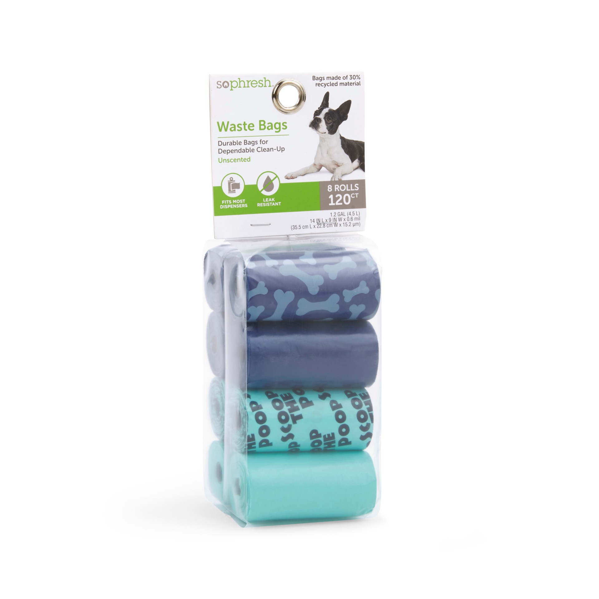 The So Phresh Blue Printed Unscented Waste Bags have the scoop on convenience. These bags are durable, leak-resistant, and fit in most dispensers, making it a walk in the park to pick up after your pu…