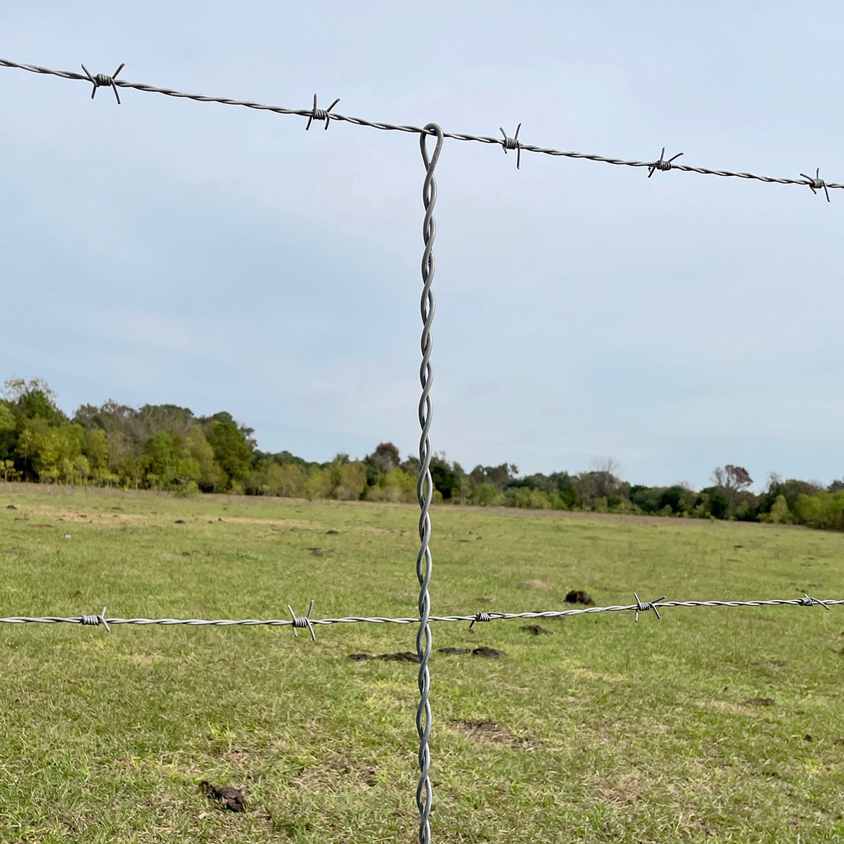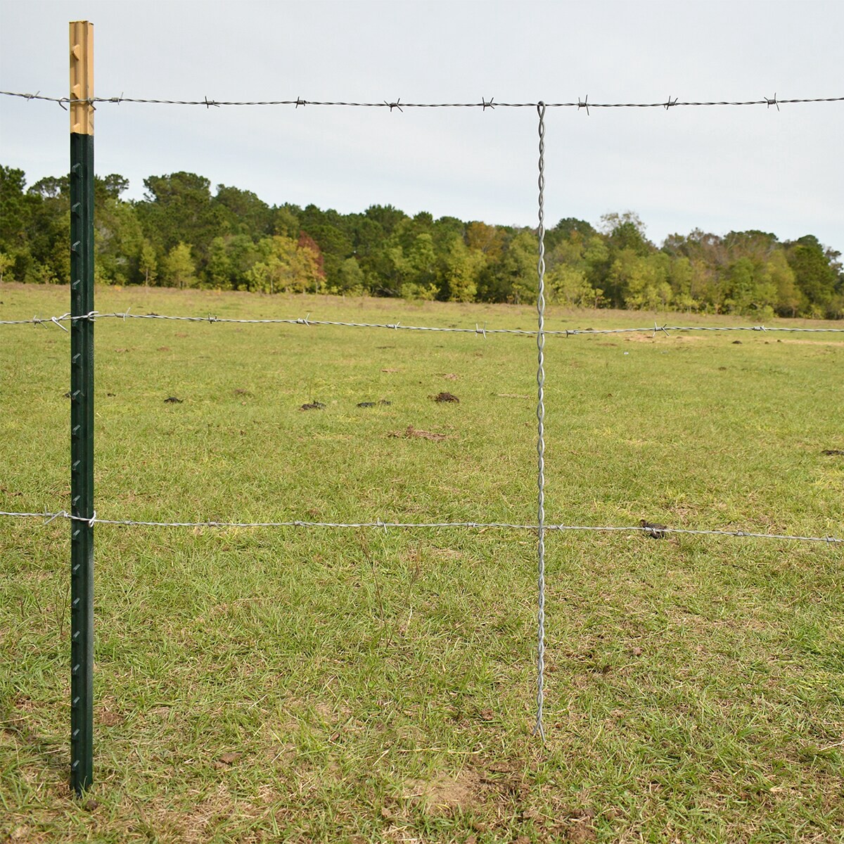 Galvanized steel fence stays for barbed wire, barbless wire, or wire fence. Measures 36in H and is made of 9.5-gauge steel wire. Sold individually, not in bundle. Coiled design easily twists onto wire…