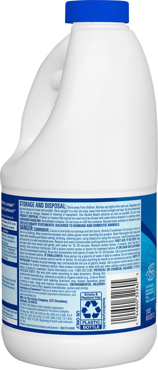 Slimmed down version makes it easier to pour. Clorox Disinfecting Bleach with CloroMax kills 99.9% of household germs and bacteria including norovirus, flu virus, MRSA, E. Coli, and Salmonella left on…
