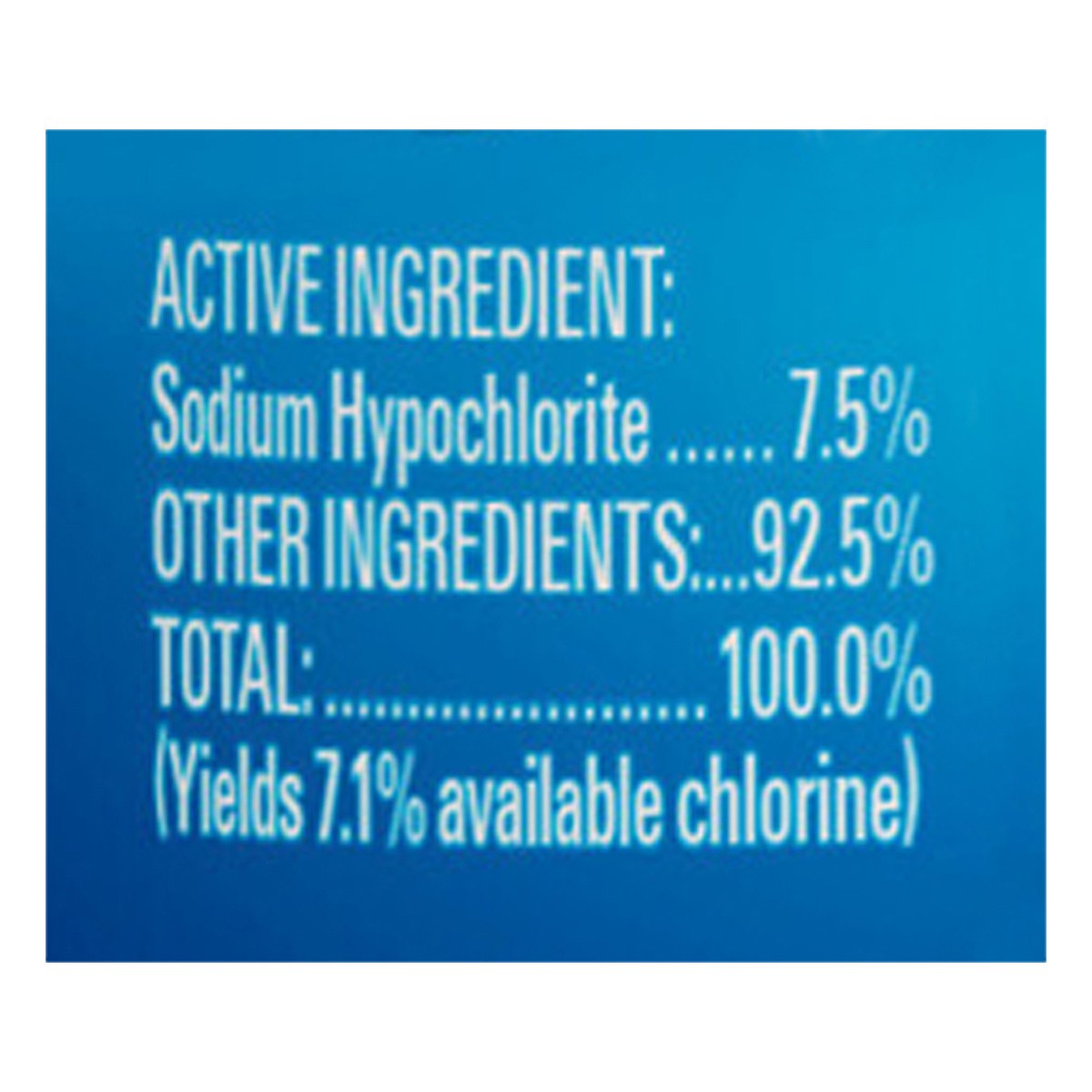 ACTIVE INGREDIENT: Sodium Hypochlorite: 7.5%; OTHER INGREDIENTS: 92.5%; TOTAL: 100.0% (Yields 7.1% available chlorine); CONTAINS NO PHOSPHORUS.