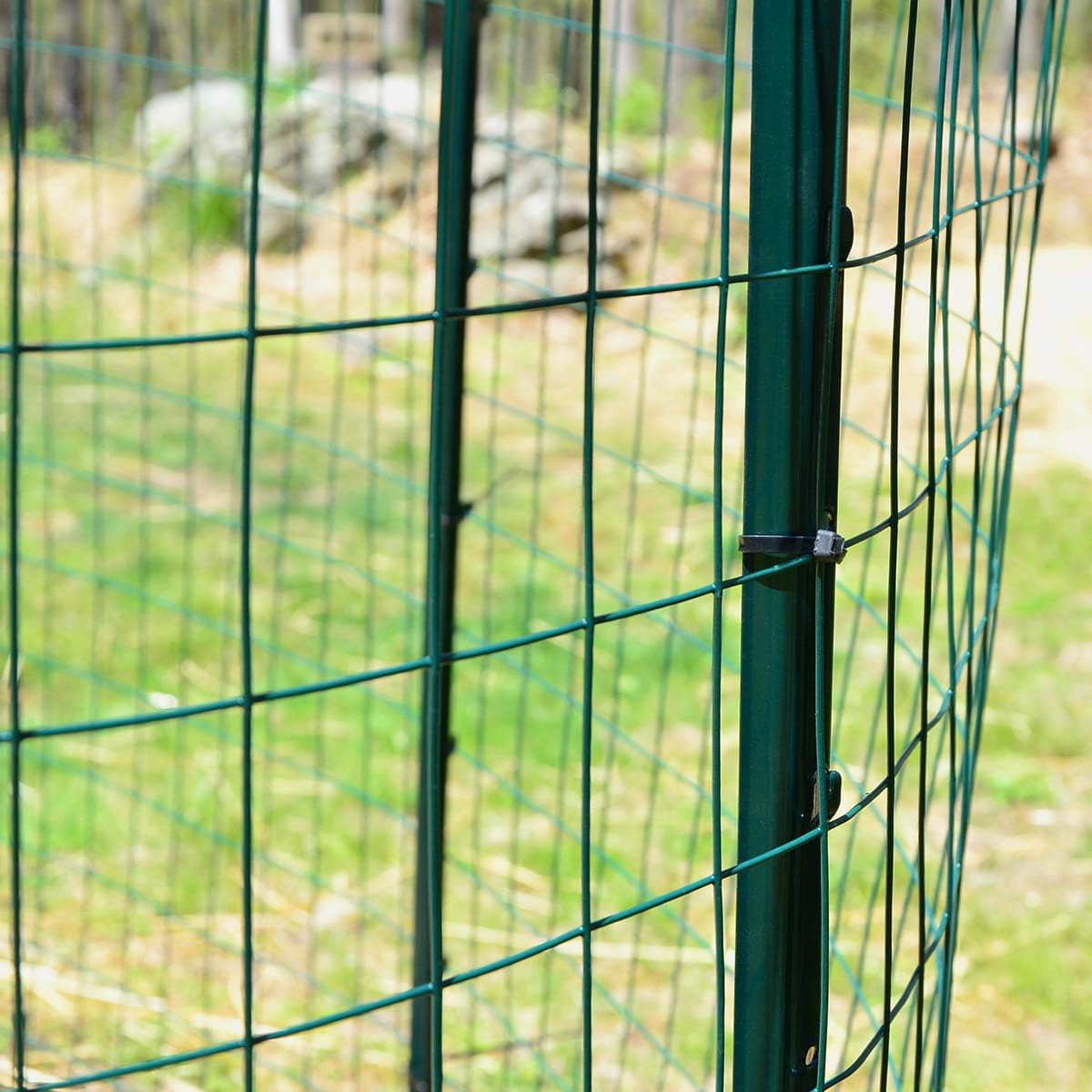 36in H x 50ft L green vinyl fence. Constructed of vinyl coated steel wire. Fence grid measures 2in x 3in. Perfect for lawn and garden fencing and cage wire.
