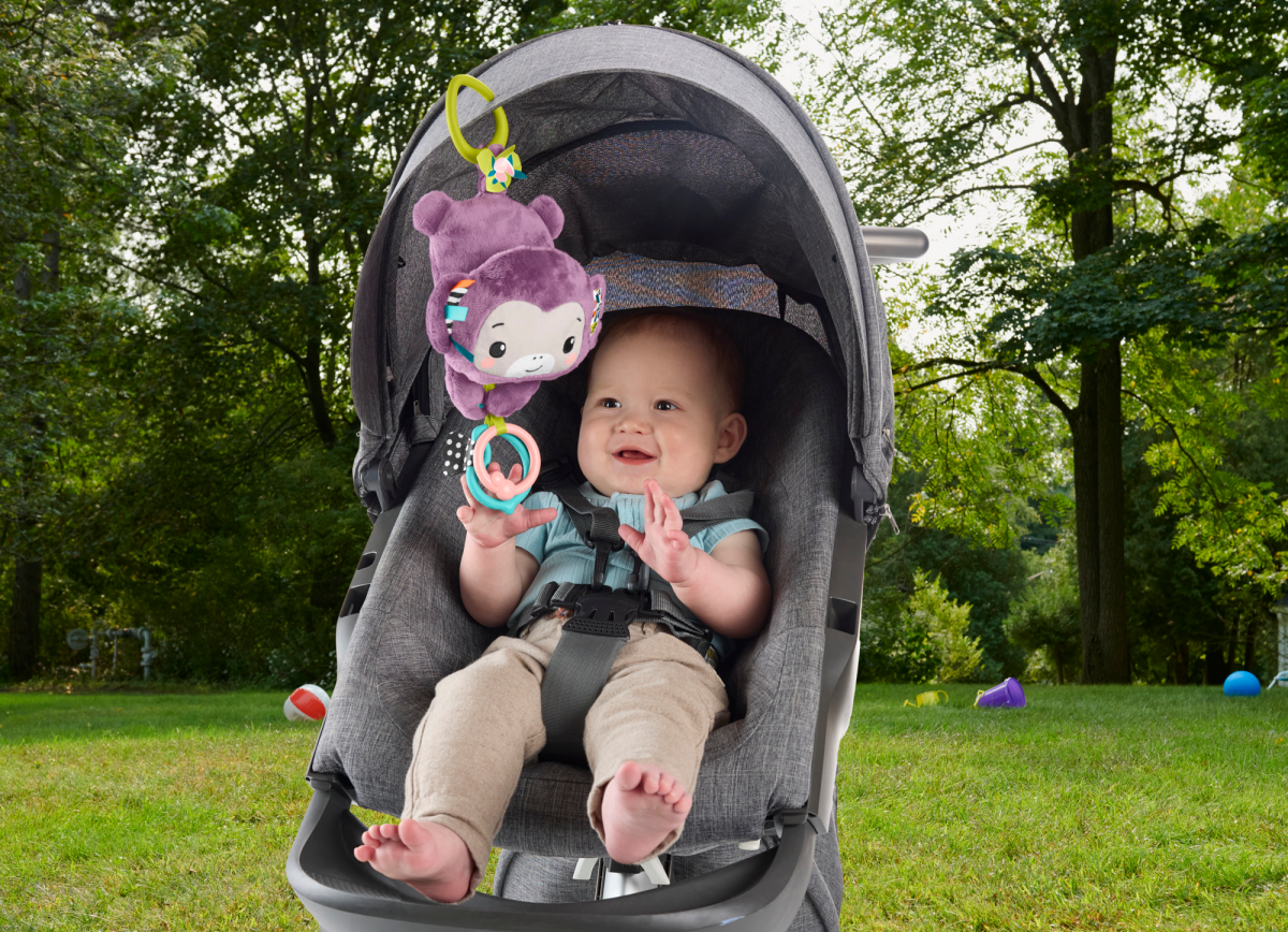 Take your babys favorite tune on the go with the Fisher-Price Sing & Go Purple Monkey stroller toy, which features the popular Purple Monkey song from the best-selling Deluxe Kick & Play Piano Gym*! J…