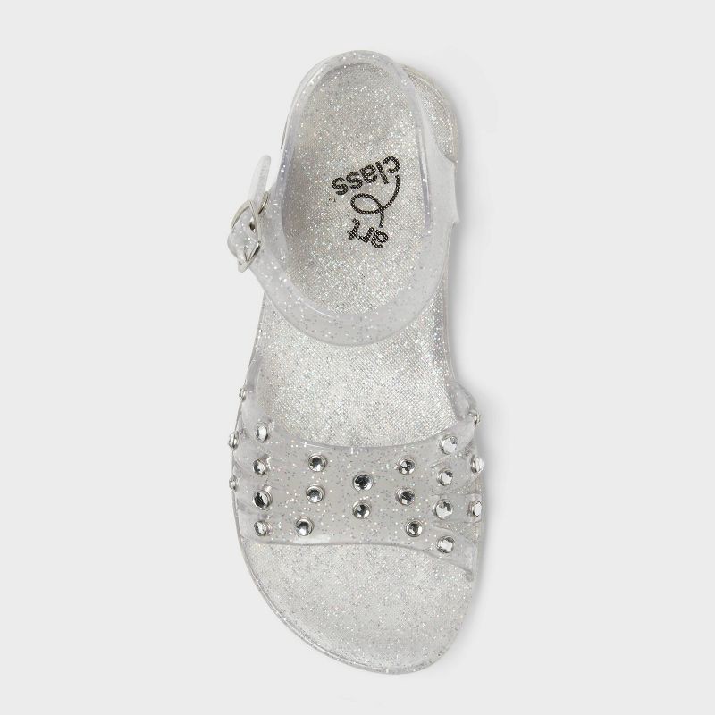 Your kid will shimmer in style with these Alea Glitter Jelly Sandals from art class™. These jelly sandals feature glittered detailing and boast a single band with shiny crystals for a statement look. …