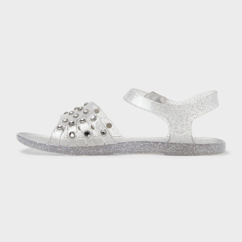 Your kid will shimmer in style with these Alea Glitter Jelly Sandals from art class™. These jelly sandals feature glittered detailing and boast a single band with shiny crystals for a statement look. …