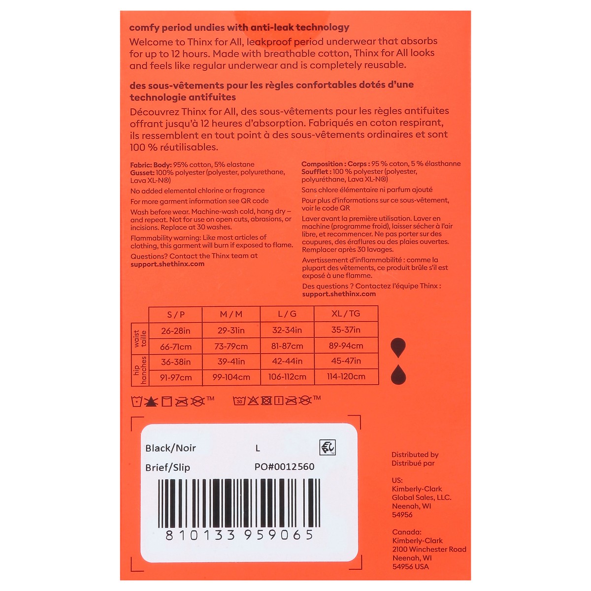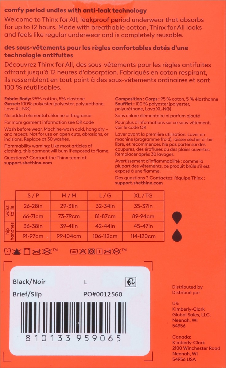 Thinx for All Black Leakproof Brief Underwear, Size Large, 1 ea
