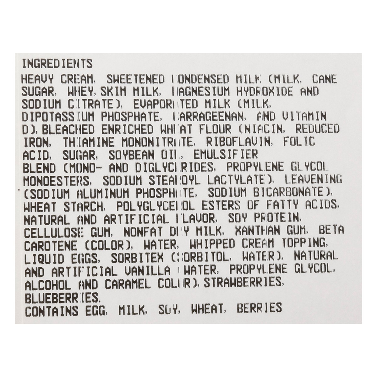 Contains egg, milk, soy, wheat, berries.
