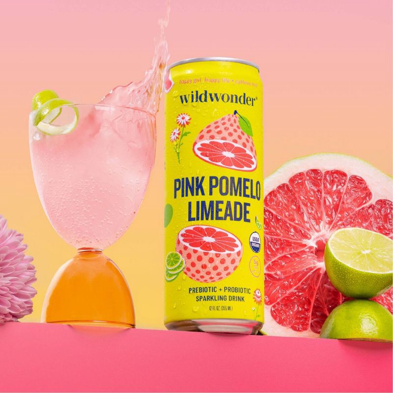 wildwonder Pink Pomelo Limeade Organic Prebiotic + Probiotic Sparkling Drink - 12 fl oz Can