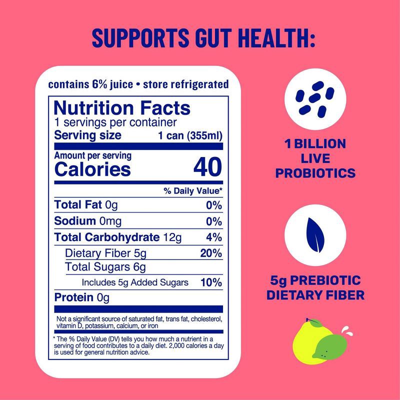 - 1 billion live probiotics + 5g dietary fiber to support gut health