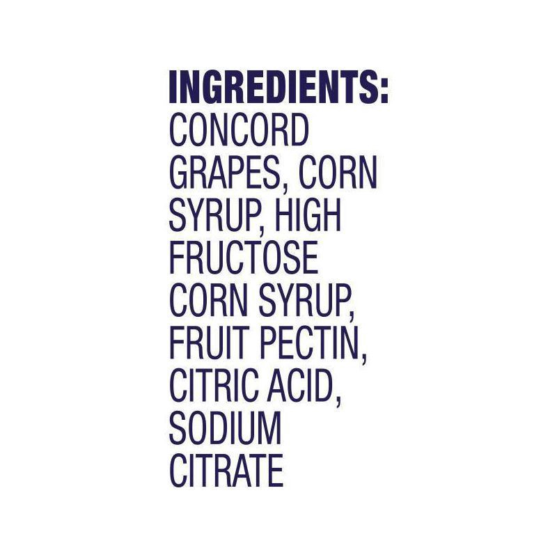 Concord Grapes, Corn Syrup, High Fructose Corn Syrup, Fruit Pectin, Citric Acid, Sodium Citrate.