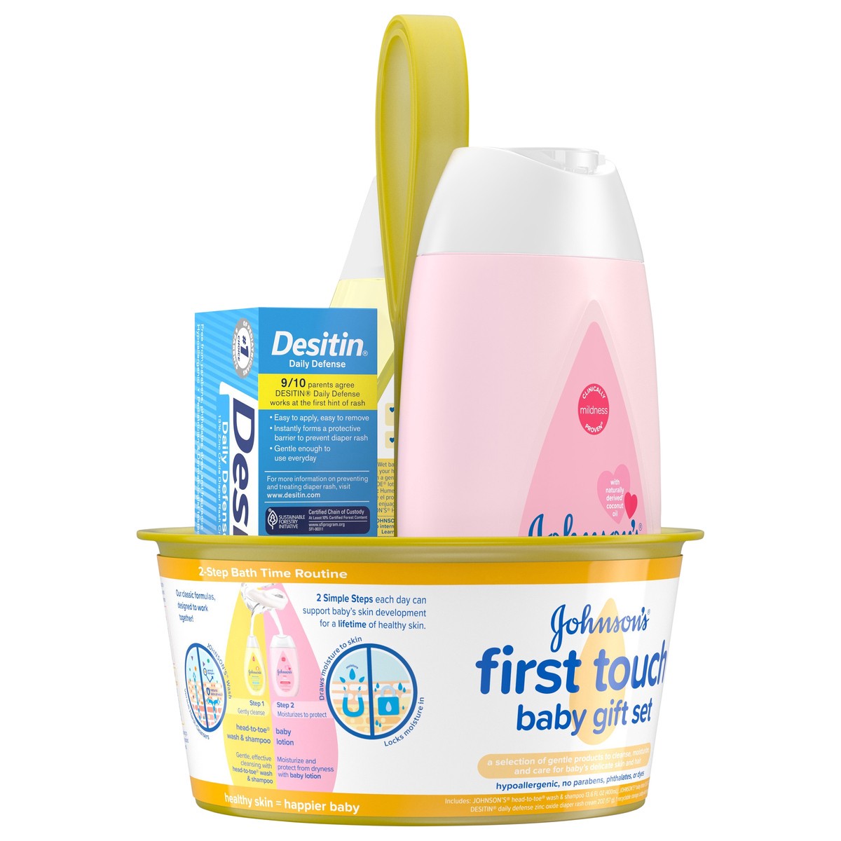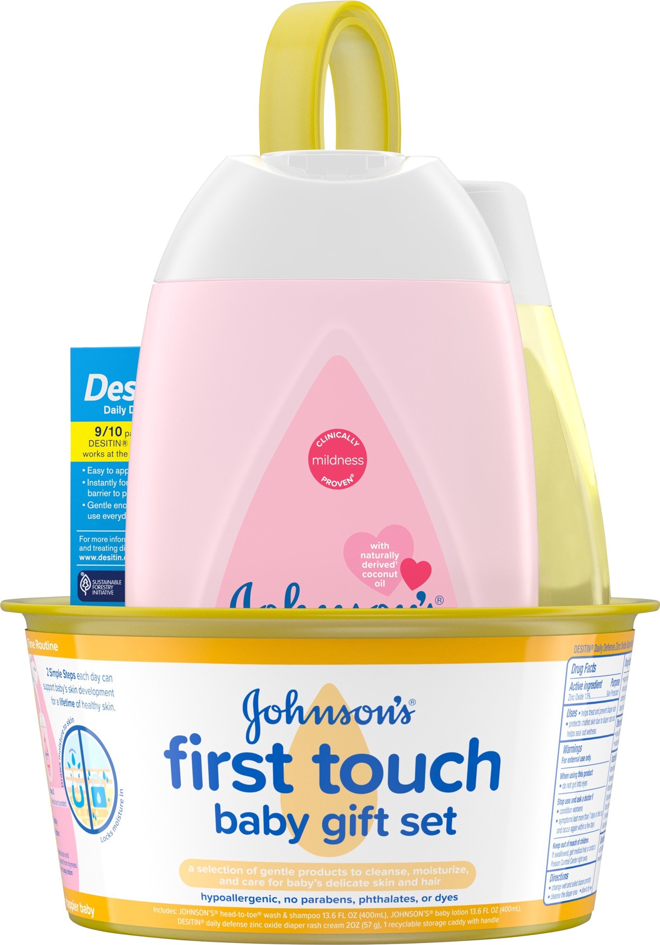 Johnson's First Touch Baby Gift Set that contains an assortment of gentle products to cleanse, moisturize, and care for your baby's delicate skin and hair. Specially designed for babies but great for …