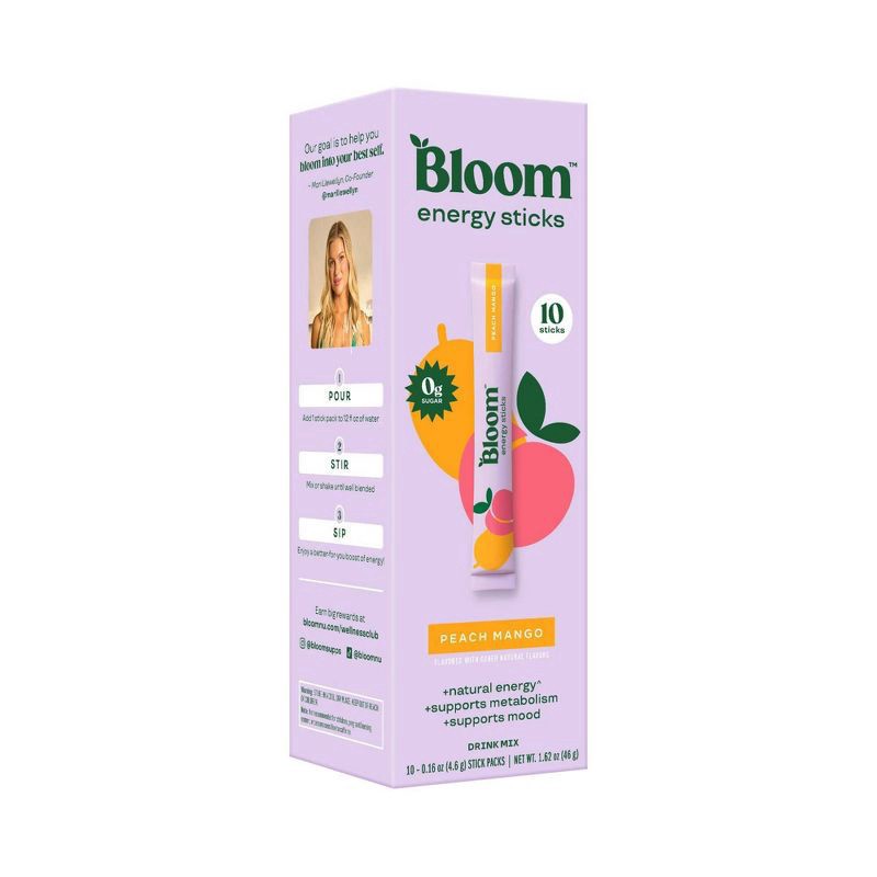 Bloom Nutrition Energy Peach Mango Flavored Water Drink Mixes - 10pk