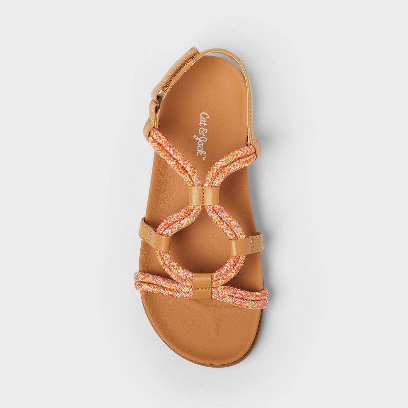 Your kid will walk in cool, comfy style with these Paulie Footbed Sandals from Cat & Jack™. These open-toe sandals are designed with colorful straps with a hook-and-loop fastener on the ankle for a se…